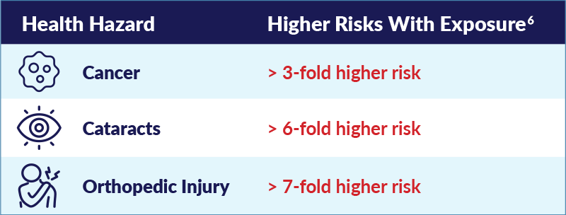 Interventional fluoroscopy teams have the highest radiation exposure of all medical professionals4 creating significant health hazards that can now be avoided5