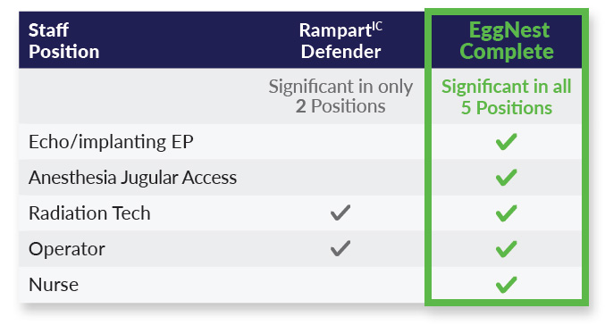 - EggNest™ Complete system significantly reduced radiation dose at ALL team positions, body regions and C-arm angulations