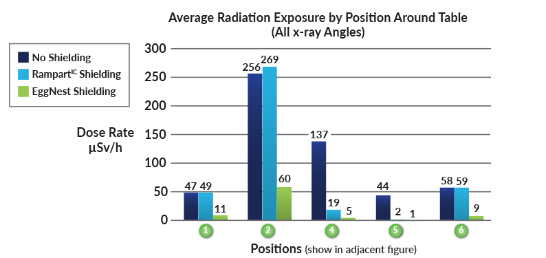 - Both EggNest and RampartIC Shielding provided a marked and similar reduction in x-ray dose rates for the operator and assistant (4 & 5)